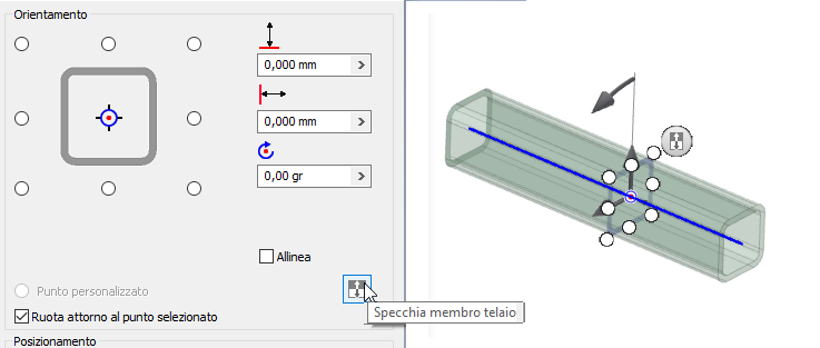 Per ulteriori informazioni sull'utilizzo del comando Specchia, vedere Come disporre le lavorazioni delle parti nelle serie.