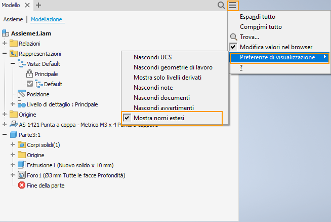 Per ulteriori informazioni sul browser vedere Browser di Inventor.