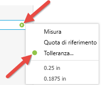 Le preimpostazioni ora memorizzano le informazioni di tolleranza per i campi dei valori. È possibile accedere alla finestra di dialogo Tolleranza dal menu a comparsa del campo. Per ripristinare il valore senza alcuna tolleranza, impostare il tipo di tolleranza su Default e salvare la preimpostazione. Quando un valore dispone di una tolleranza, il controllo di modifica del valore visualizza uno sfondo colorato sotto la freccia a comparsa e sul menu a comparsa.