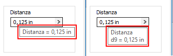 Nei campi relativi ai valori vengono ora visualizzati il nome del parametro nella descrizione comandi. Quando si posiziona il cursore sul parametro, il nome viene visualizzato insieme al valore.