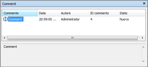 Nella finestra Commenti sono visualizzati nome, ora e data, autore, ID, stato e oggetto (o la prima riga) di ogni commento. Varie icone consentono di identificare immediatamente l'origine di ogni commento.