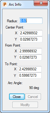 Use the Arc Info dialog to view, or modify, information about an arc when working in CAD mode.