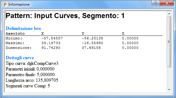- Proprietà — Selezionare per visualizzare le estensioni, il tipo e i punti chiave della curva.