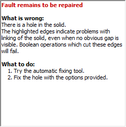 Occorre rimuovere tali difetti, in quanto posso causare la mancata esecuzione delle ulteriori operazioni sulla feature del solido.