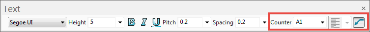 Quando si crea un cerchio di posizione, è visualizzata una versione modificata della barra degli strumenti Testo, contenente opzioni specifiche per i cerchi di posizione:
