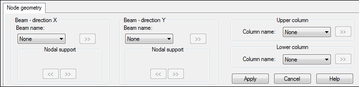 For RC beams, names of nodal supports may be defined. Names are congruous with names of supports of a beam in the beam module. After all elements are defined, click Apply. A node model will display on the screen.