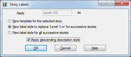 - New label style for all successive stories - The name of the story that you select is treated as a template for the stories that you subsequently define. The names of all successive stories are changed.