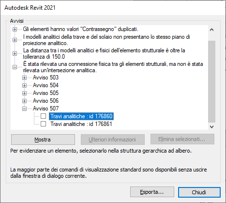 Avviso di esempio: elemento analitico senza i parametri di struttura