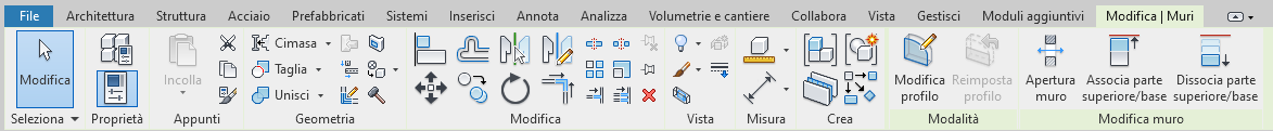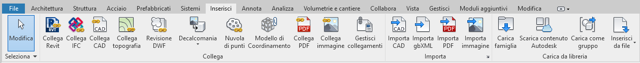 La barra multifunzione viene visualizzata quando si crea o si apre un file e fornisce accesso a tutti gli strumenti necessari alla creazione di un progetto o di una famiglia.