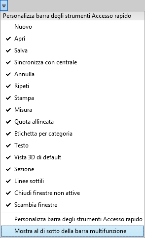 È possibile visualizzare la barra degli strumenti Accesso rapido al di sotto o al di sopra della barra multifunzione. Per modificare questa impostazione, nella barra degli strumenti Accesso rapido, fare clic sul menu a discesa Personalizza barra degli strumenti Accesso rapido