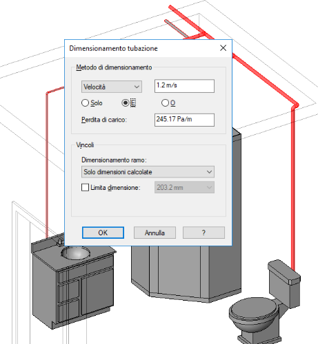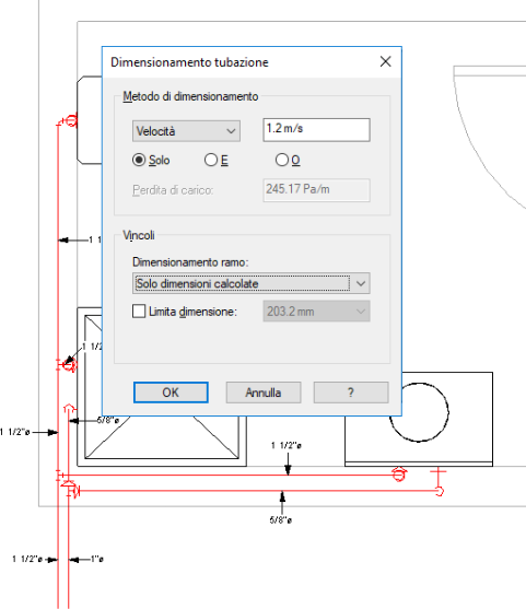 Le immagini seguenti mostrano i risultati dei vari metodi di dimensionamento di tubazioni.