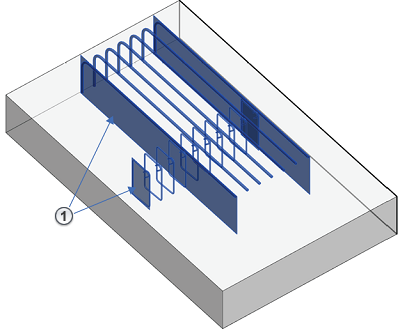 Quando un insieme di barre e un insieme di staffe standard vengono distribuiti nella stessa direzione, ossia hanno piani di curvatura paralleli, la barra standard non eseguirà lo snap alla staffa.