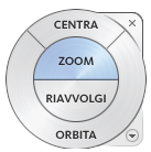 Nota: Quando si utilizza lo strumento Zoom dal disco Navigazione completa o dal disco Vista oggetto, il punto della vista in cui si fa clic per eseguire lo zoom diventa il punto centrale per le operazioni Orbita future finché non si riutilizza lo strumento Zoom o lo