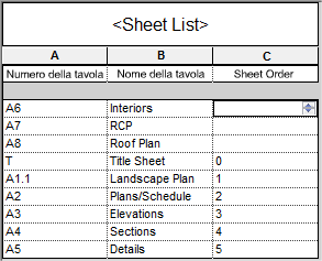 In Revit LT, la colonna Sheet Order viene nascosta nell'elenco di tavole.