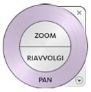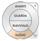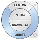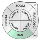Accedere agli strumenti di navigazione 2D e 3D utilizzando SteeringWheels. Ognuno dei 3 strumenti SteeringWheels maxi e dei 3 strumenti SteeringWheels mini fornisce l'accesso a molti metodi di navigazione.