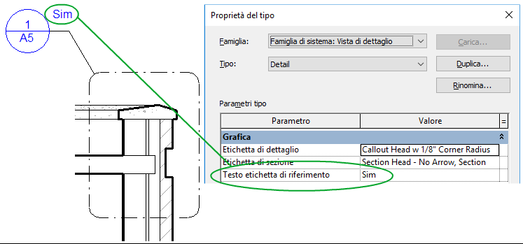 Nota: Testo etichetta di riferimento è una proprietà della vista a cui si fa riferimento, e non dell'istanza corrente del simbolo circolare. Di conseguenza, a tutti i dettagli che fanno riferimento a tale vista verrà associato lo stesso testo etichetta.
