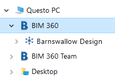 - In Esplora file di Windows®, cercare una voce per BIM 360. Espanderla per visualizzare i progetti.