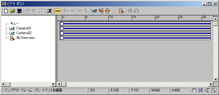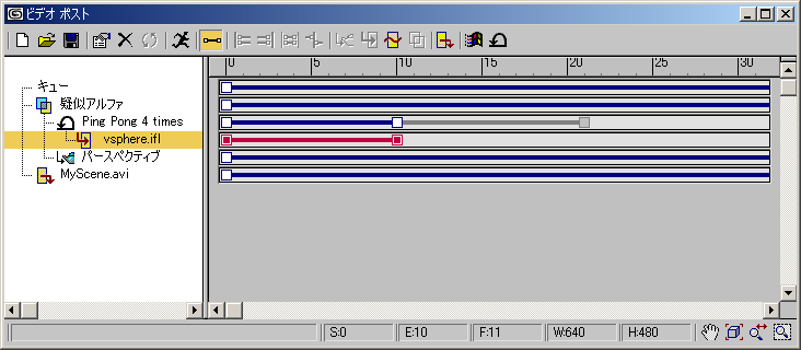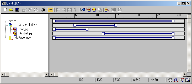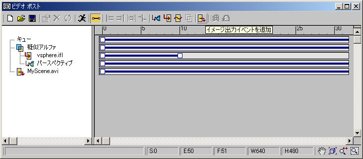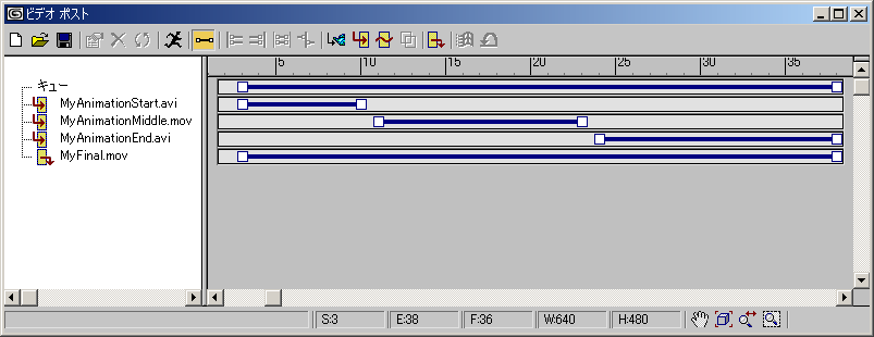 このプロセスで生成されるアニメーションは、別のビデオ ポスト シーケンスのイメージ入力イベントとして使用できます。