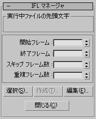 - 順次リスト内のファイルを選択できるファイル選択ダイアログ ボックスを表示します。プレフィックスとファイル名拡張子が同じであれば、ファイルに付加された番号は関係ありません。ファイルを選択すると、[IFL マネージャ](IFL Manager)ユーティリティの編集ボックスが使用可能になります。