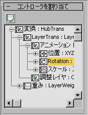 基本的なレイヤ タイプ(Abs、+L、+W)では、新しいコントローラを任意のボーンに割り当て、ボーンの動作を変更したり、キーフレームの補間を変更したりできます。