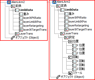 レイヤ システムはリグのプリセットと一緒には保存されないため、リグのプリセットを保存しようとすると作業が失われてしまいます。レイヤ システムは、キーフレーム コントローラを保持するよう設計されています。このため、複雑なコントローラ設定を作成する場合は、この設定を設定コントローラに保存することをお勧めします。これにより、特定のレイヤだけでなく、リグにも設定が組み込まれます。