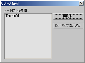 [リソース情報](Resource Information)ダイアログ ボックスには、ビットマップが他のマテリアルまたはフォトメトリック分配ファイルで使用される場所が表示され、またそのビットマップのイメージが示されます。