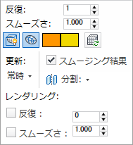 レンダリング時に、オブジェクトに異なるスムージング反復数と異なるスムーズさの値の一方または両方を適用します。