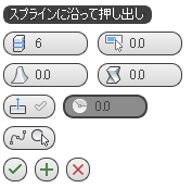 手動によるスプラインに沿った押し出しを実行した後でこのキャディを開いた場合は、その時に使用したスプラインの名前がボタン上に表示されています。