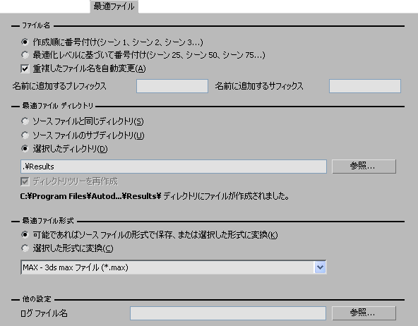 これらのオプションでは、生成されるファイルの保存場所をプロ オプティマイザーに指定します。