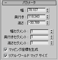 - [幅セグメント](Width Segs)、[奥行きセグメント](Depth Segs)、[高さセグメント](Height Segs)