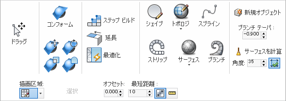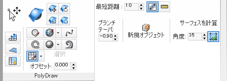 最小化されたリボンの[ポリ ドロウ](PolyDraw)パネル
