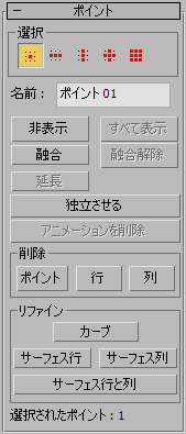 このトピックの「インタフェース」で説明する[選択](Selection)領域には、ポイント サブオブジェクトを選択するための追加オプションが含まれています。