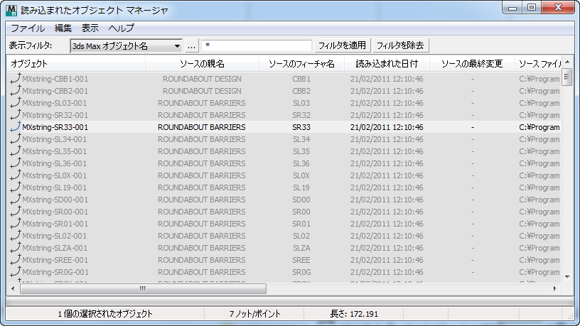 • 3ds Max オブジェクト名3ds Max のオブジェクト名マスクに完全または部分的に一致するオブジェクトのみのリストを表示します。