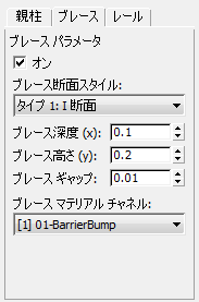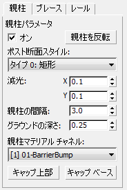 エディタの右にはレール オブジェクト スタイルを編集するためのパネルがあります。 これは、レール オブジェクト コンポーネントごとに 1 つずつ、[親柱](Posts)、[ブレース](Braces)、[レール](Rails)の3 つのタブがあります。