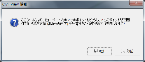 [方位を測定](Measure Bearing)を使用すると、Civil Viewから、測定するポイントを選択するよう求められます。