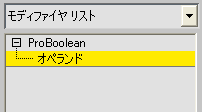 変更された ProBooleanオブジェクトを選択すると、モディファイヤ スタックには 1 つの展開可能な項目[ProBoolean]が表示されます。
