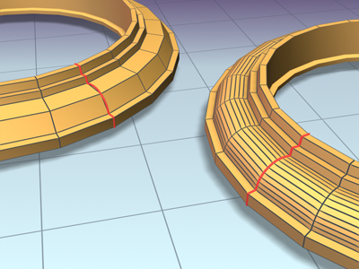 断面シェイプの各頂点間のステップ数を設定します。この値はロフト周辺の側面の数に影響します。