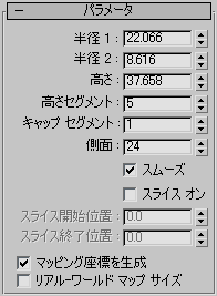 マップしたマテリアルを円錐に適用するための座標を自動的に生成します。既定値ではチェックマークが付いています。