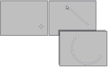 円弧の 2 つの終点を設定するため、1 つの終点の位置からドラッグし、もう 1 つの終点の位置でマウス ボタンを放します。さらに、2 つの終点間の 3 番目の点を指定するため、その位置まで移動してクリックします。