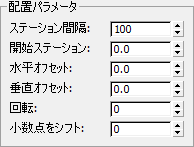 - [開始ステーション](Start Station) / [水平オフセット](Horiz Offset) / [垂直オフセット](Vert Offset) / [回転](Rotation)