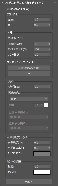 [Civil View エクスプローラ](Civil View Explorer) > [環境マップ](Environment Map) > [フィジカル サン&スカイ パラメータ](Physical Sun & Sky Parameters)