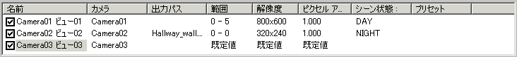 - シーンにあるカメラを表示します。
