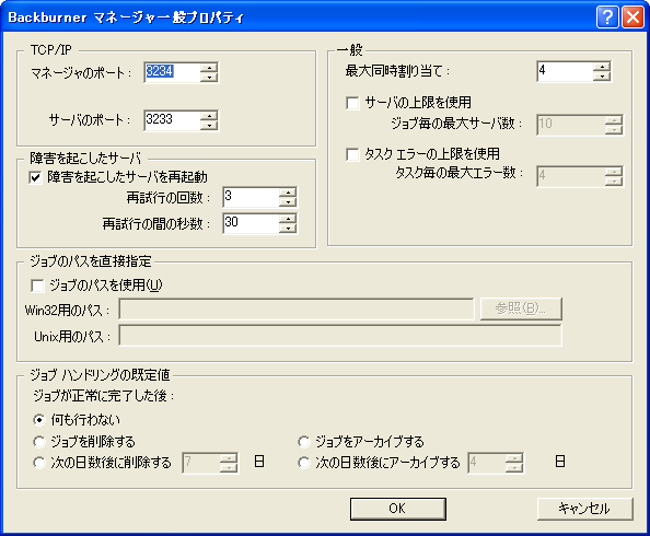 [Backburner マネージャ一般プロパティ](Backburner Manager General Properties)ダイアログ ボックス