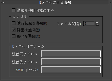 - レンダリング ジョブが終了したら E メールによる通知を送信します。既定値ではチェックマークは付いていません。