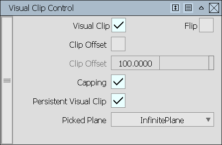 Alias Studio の Dynamics Section ツールのビジュアル クリッピング機能を Visual Clip ツールとして Alias Concept に追加しました。この新しいツールでは、コンストラクション プレーンを使用してオブジェクトのクリッピングを実行できます。たとえば、セクションを表示したまま、ワイヤフレームやシェードされたモデルを視覚的にクリップすることができます。このツールにアクセスするには、ツール パレットで Evaluate > VisualClip を選択します。