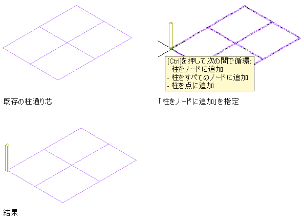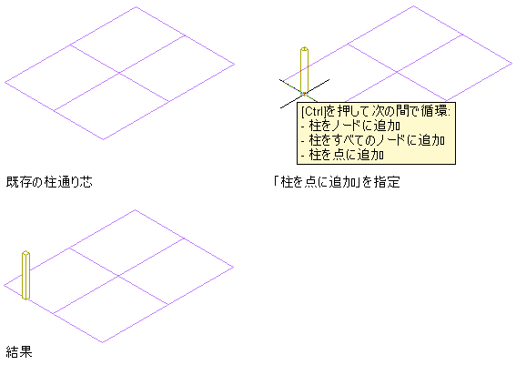 | 通芯のすべての節点に柱を追加するには | [Ctrl]を押して、クリックします。 |