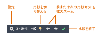 外部参照比較操作を開始すると、[外部参照比較]ツールバーが表示されます。