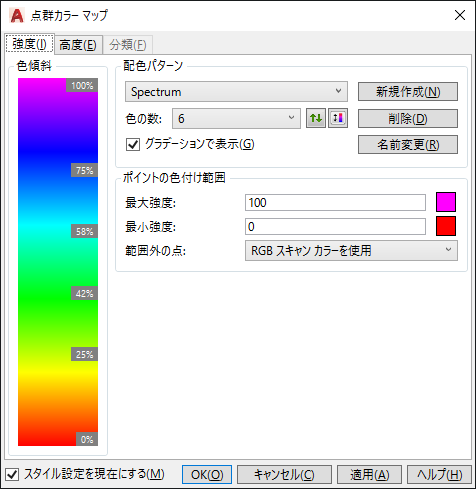 [強度]点群スタイル設定の配色パターン設定を編集します。