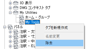 [タブを新規作成]という名前の新しいリボン タブが[タブ]ノードの一番下に表示されます。