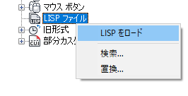 <ファイル名> 内のカスタマイズ]ペインで、[LISP ファイル]ノードを右クリックしします。[LISP をロード]を選択します。